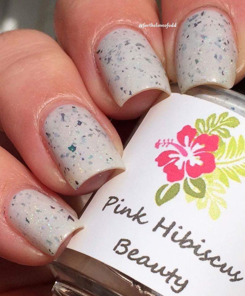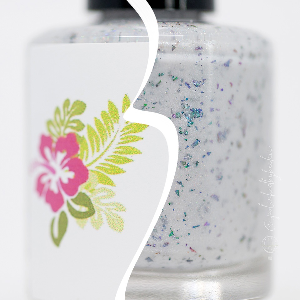 White shimmer cream with ultra chameleon chrome flakies and a scattered holographic finish.