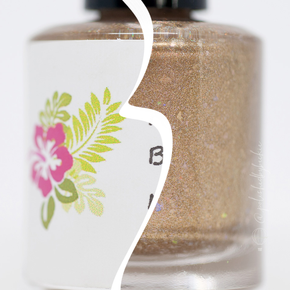 24 Karat Snow- A gold metallic with rainbow illusion flakies and a scattered holographic finish.